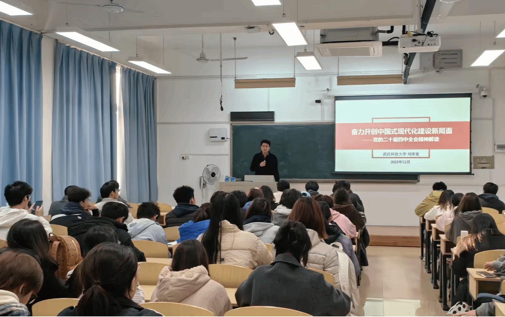 (通讯员 王玮琪)为推动党的二十届四中全会精神在青年学子中落地生根,引导艺术专业学子将理论学习与专业实践深度融合,武汉科技大学辅导员宣讲队于12月18日走进艺术学院,以“专题宣讲+互动研讨”的形式开展全会精神专题学习活动。学院学生党员、入党积极分子、团学骨干及各年级学生代表齐聚一堂,共同感受思想伟力、凝聚奋进共识。