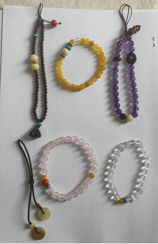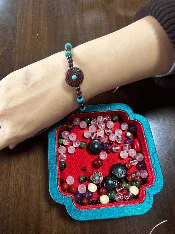 经过一番精心创作,一件件精致独特的串珠手链陆续完成:有的巧搭水晶珠串,显灵动清辉;有的选用檀木珠搭雕花小件,尽显雅致;有的选配星月菩提和玛瑙,凸显质朴韵味。每一件作品都饱含着大家的巧思与对生活的热爱。活动最后,大家纷纷戴上自己的成品手链展示成果,合影留念,脸上满是成就感与幸福感。